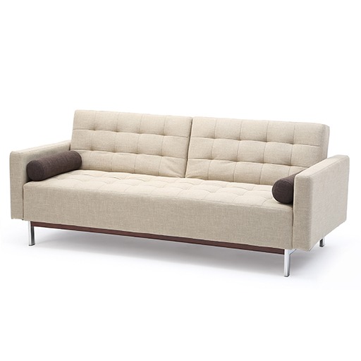 Vico Monaco Sofa Bed - Modern Contemporary 3 Seater Sofa Bed with individually adjustable backrests, finished in a button back detail. A stainless steel leg with accompanying wood trim completes the stylish looks of this modern design.